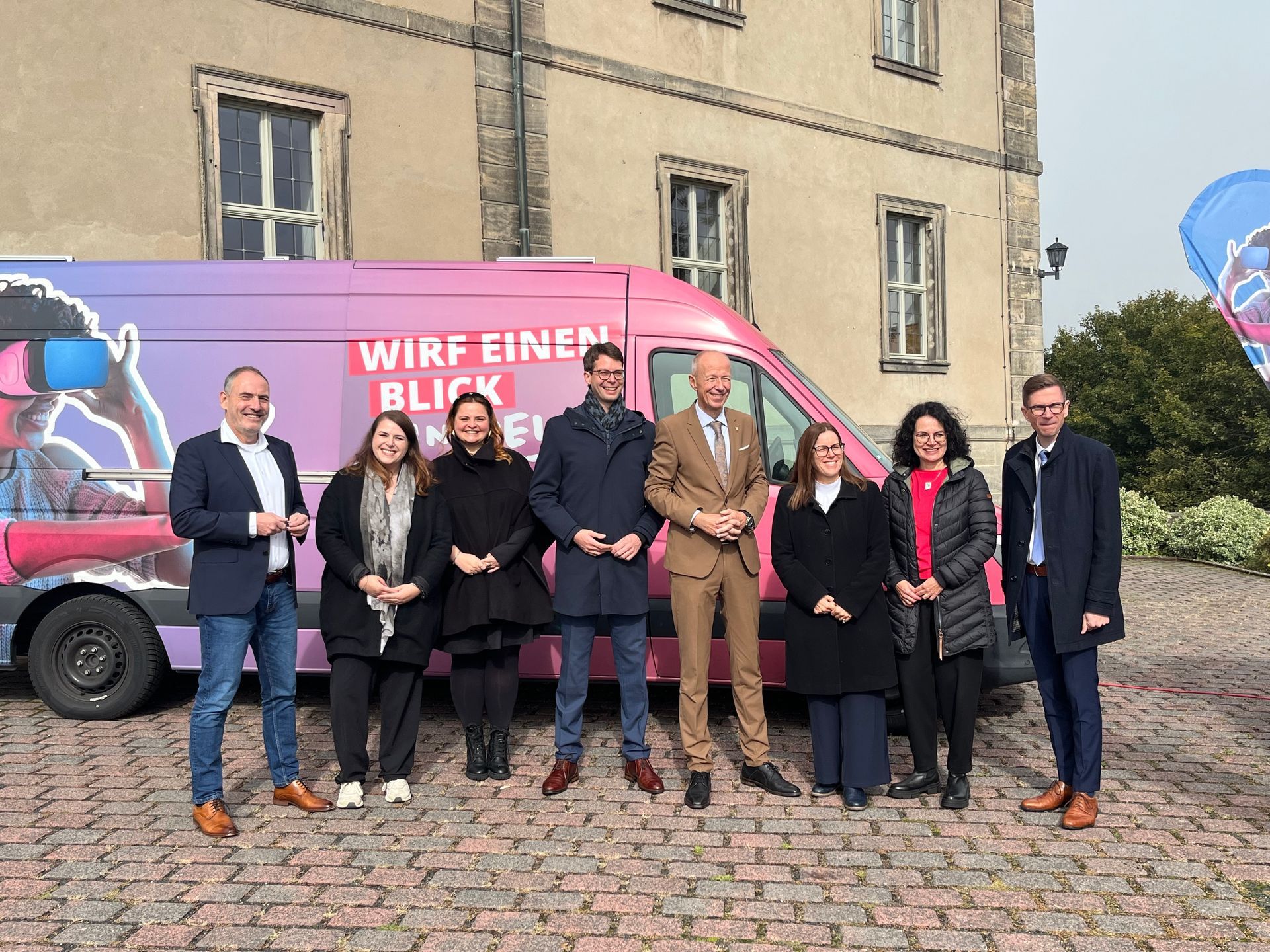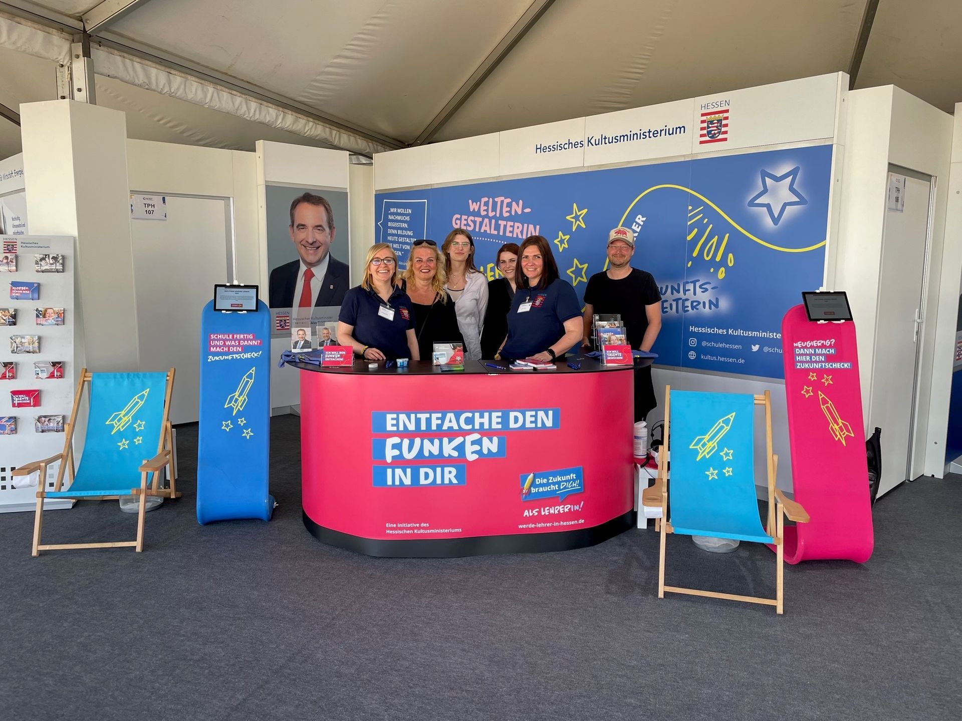 „Die Zukunft braucht Dich! Werde Lehrer in Hessen!“ So heißt die von uns betreute Nachwuchskampagne des Kultusministeriums Hessen, die Jugendliche für den Beruf der Lehrerin oder des Lehrers begeistern möchte. Denn der demografische Wandel macht auch vor dem Lehrerzimmer keinen Halt – und steigert den Bedarf an Nachwuchslehrkräften. Mit unserem Zukunftsbus fahren wir über 100 Schulen in Hessen an und zeigen dort einen 270-Grad-Film als VR-Erlebnis, der Jugendliche dazu inspirieren soll, sich mit dem Beruf auseinanderzusetzen. Weiterhin bieten wir 14-tägig eine digitale Sprechstunde auf Instagram an, bei der Interessierte Fragen an Referendar*innen, Lehramtstudent*innen und Lehrkräfte stellen können.